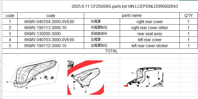 Left and right Fuel tank covers/stickers/ and rear seat suit CF250SRS