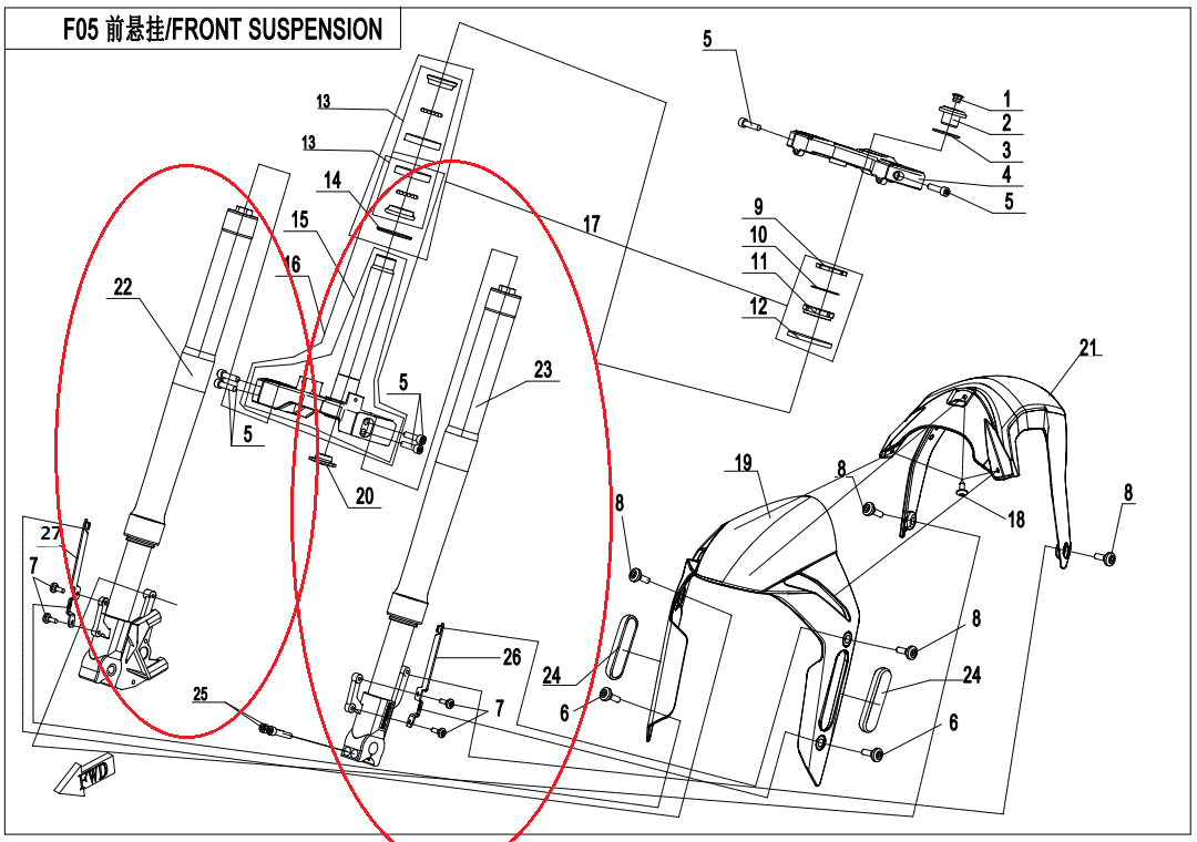 Front Left Bar and Front Right Bar suit CF250SR code is 6KMV-050100-BD02/6KMV-050200-BD02