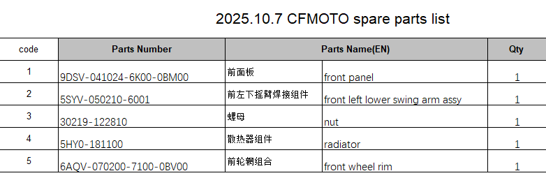 Front panel/front left lower swing arm assy/Nut/radiator/front wheel rim suit CFMOTO