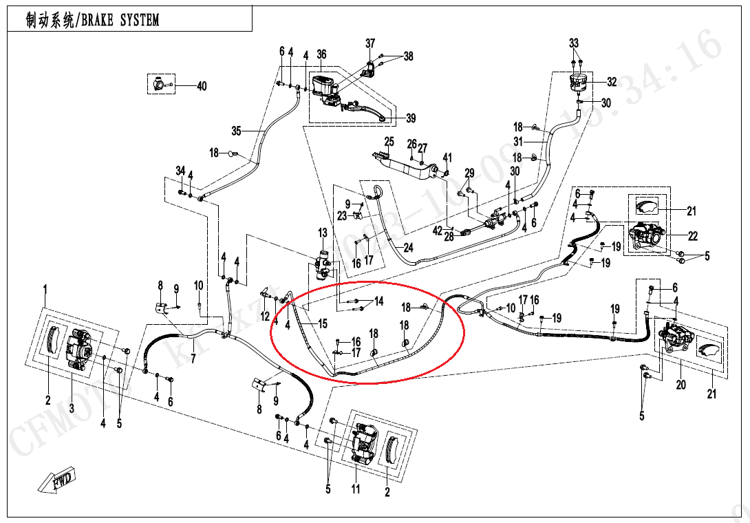 Rear Brake Line suit CForce 1000 /CFORCE OVERLAND1000 code is 9AWV-080160-8000