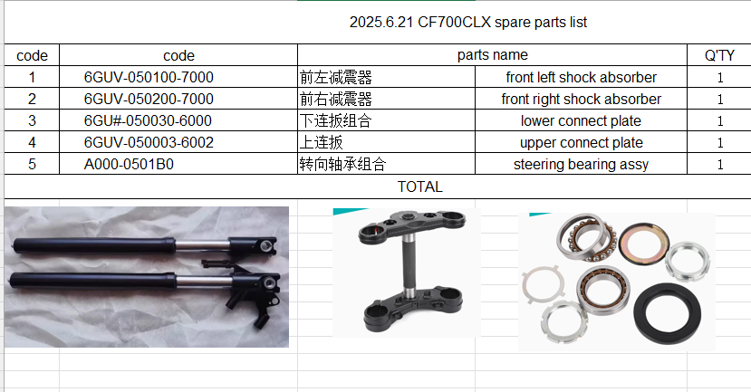 Front left and right shock absorber/lower and upper connect plate and steering bearing assy suit CF700CLX code 6GU#-050030-6000