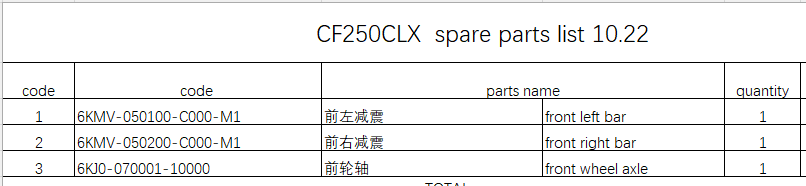 Front Left Bar and Front Right Bar and Front Wheel Axle suit CF250CLX