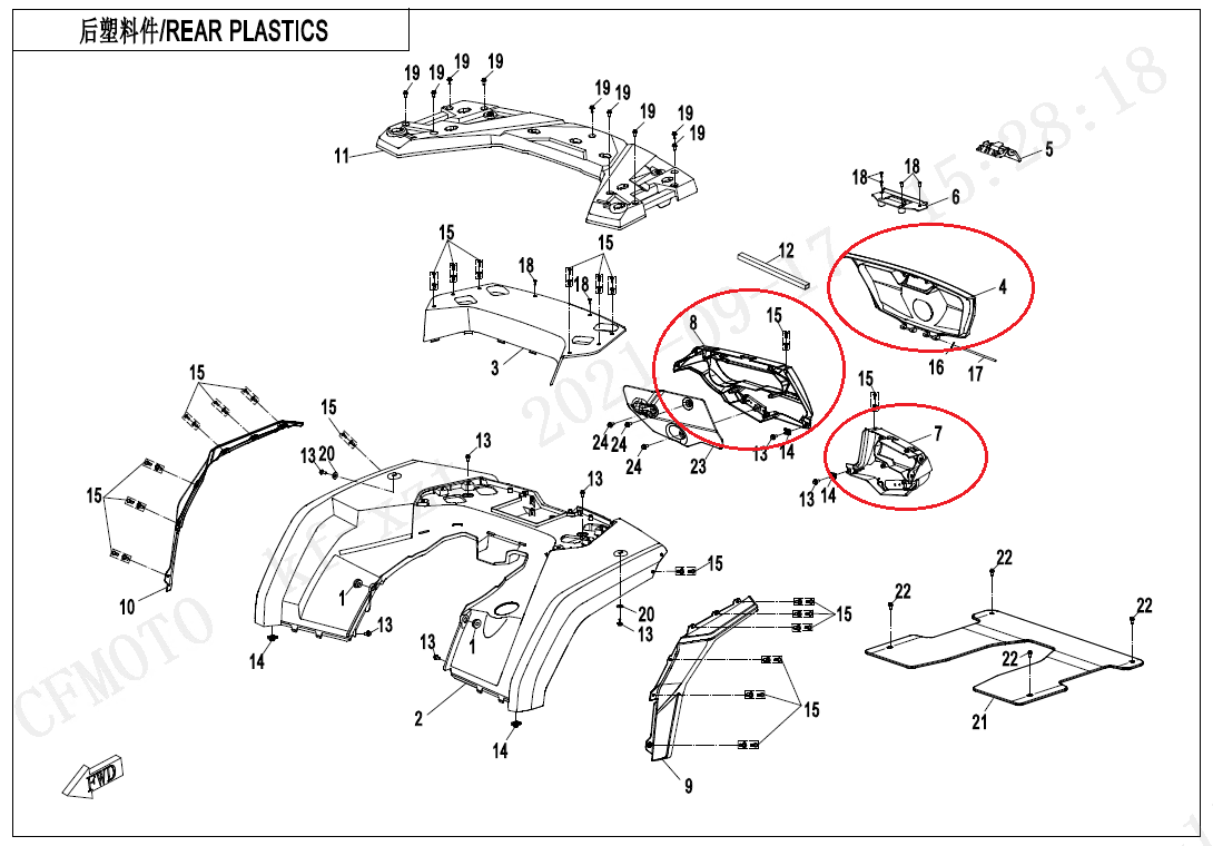 Left and Right tailight panel and rear box cover suit CF800ATV code is 9AWV-043022-2300