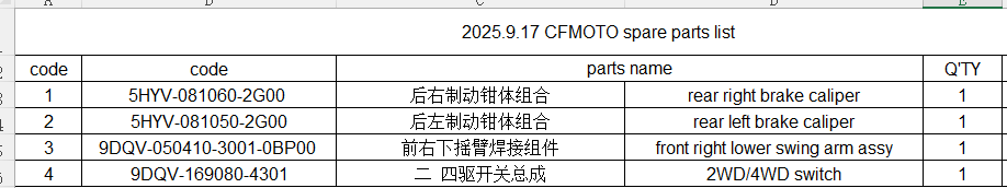 Rear Left and right brake caliper/front right lower swing arm assy/2WD/4WD switch suit CFMOTO