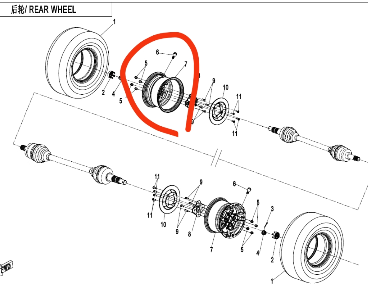 Rear Wheel Rim suit CFORCE625 Touring code is 9CSV-110100-6R00-11