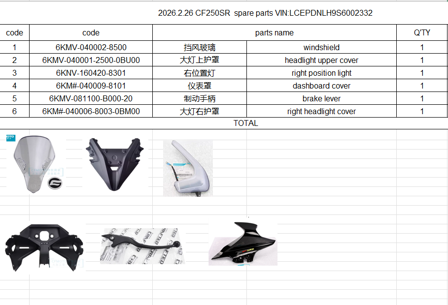Windshield/headlight upper cover and others in the list suit CF250SR