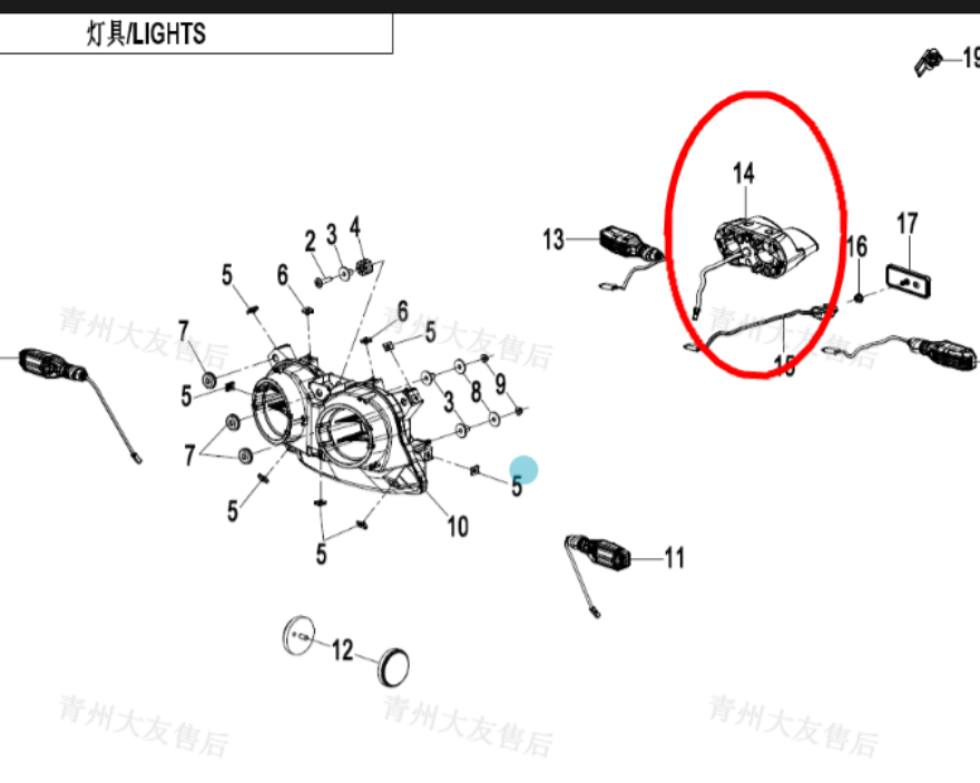 Tail light suit CF500SR code is 6ARV-160200-1000
